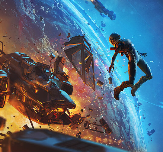 Nehmen Sie an erbarmungslosen Kämpfen in verschiedenen Ecken des Sonnensystems der Zukunft teil. Kämpfen Sie allein oder schließen Sie sich anderen Weltraumräubern an, um das Schlachtfeld zu beherrschen.